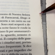 • defekte Bindung (Bruchstelle, wo die fehlenden Seiten waren)