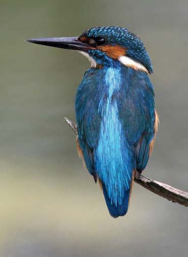 Der Eisvogel ist etwas größer als ein Sperling. Er fällt auf durch seine Farbenprächtigkeit und dem geraden, überproportioniert wirkenden langen Schnabel. Die Blaufärbung der Federn variiert je nach Lichteinfall von kobaltblau bis türkisgrün. Die weiblichen Eisvögel sehen übrigens aus wie Männchen, mit dem Unterschied, dass der Unterschnabel in individuell unterschiedlichem Maß hell orange gefärbt ist.