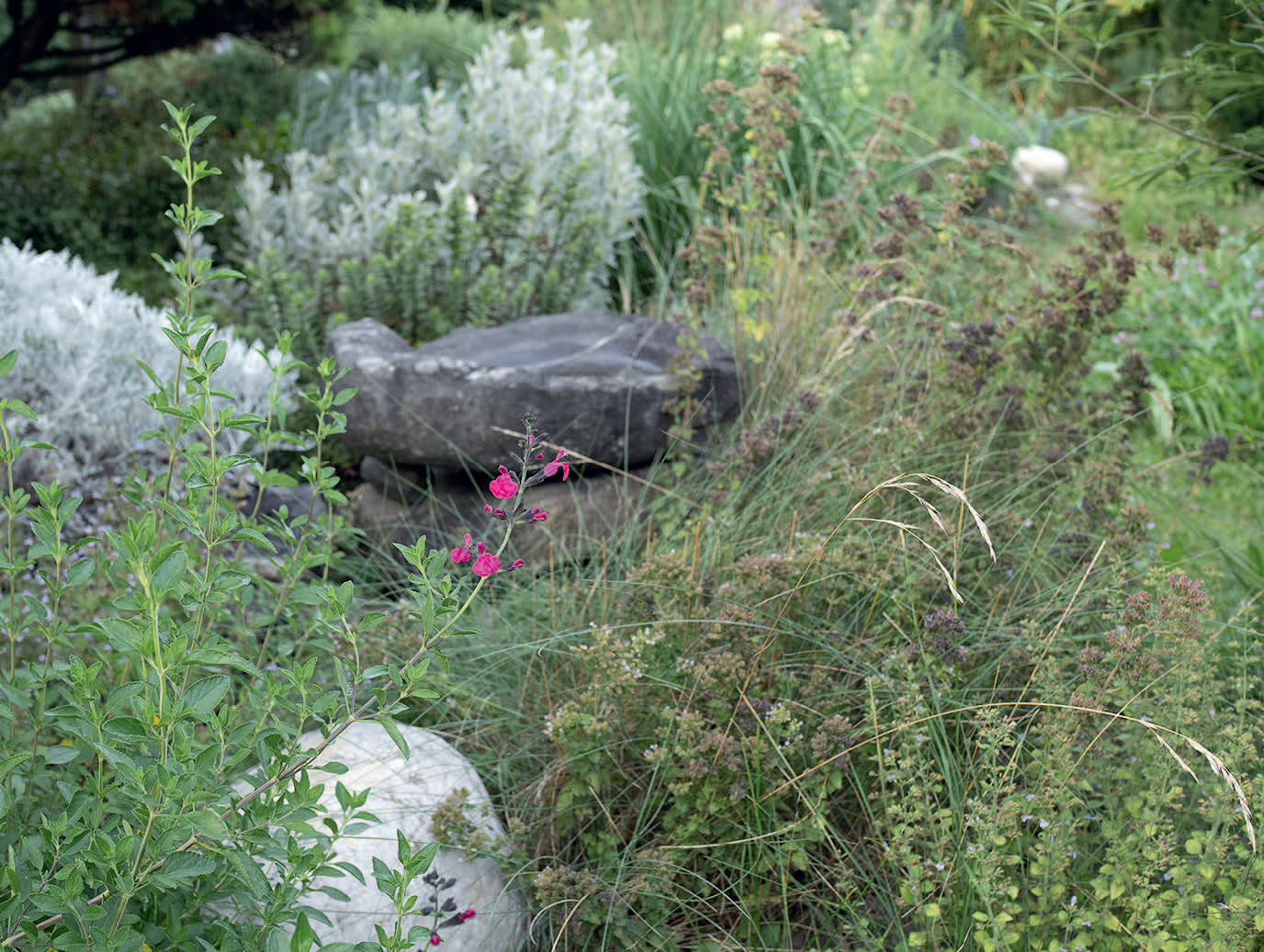 Oje, das ist in etwa so, wie wenn man Eltern fragt, ob sie ein Lieblingskind haben. Am liebsten entdecke ich den Garten und schaue an verschiedenen Orten, wie er sich entwickelt. Ich bleibe nicht an einem speziellen Platz hängen. Lustwandeln, also ein Spazieren ohne Ziel und Zeitdruck, beschreibt diese Tätigkeit wohl am besten. Wenn ich nun aber nur einen Lieblingsplatz auswählen sollte, ist es die Terrasse beim Haus. Dort kann ich am Gartentisch sitzen und einen Blick in die verschiedenen Bereiche des (fast) ganzen Gartens werfen. Das wäre dann wohl so etwas wie «Lustwandeln für die Augen». Ich kann von dort auch den Vögeln zuhören und die Insekten über der Wiese fliegen sehen. Außerdem sind die Terrassenfugen der Lieblingsort für mancherlei Pflanzensamen, den sie sich als Aussaatbeet auswählen. Ich entdecke dort immer wieder selbst versamte Schätze. Das finde ich faszinierend.