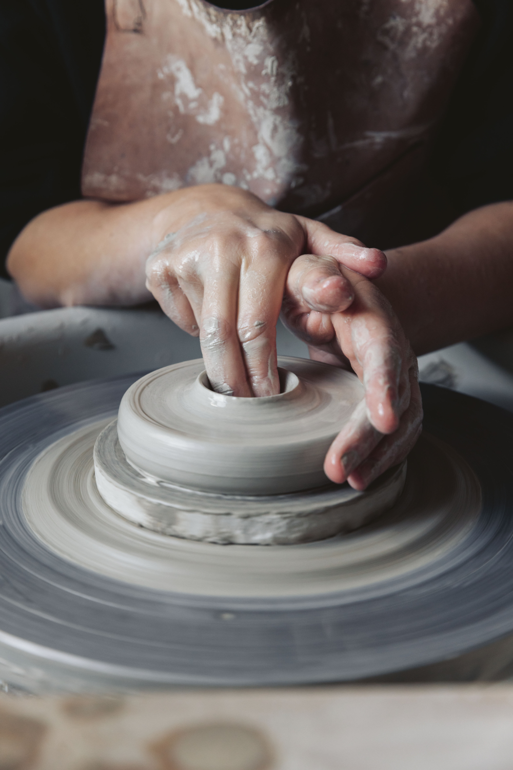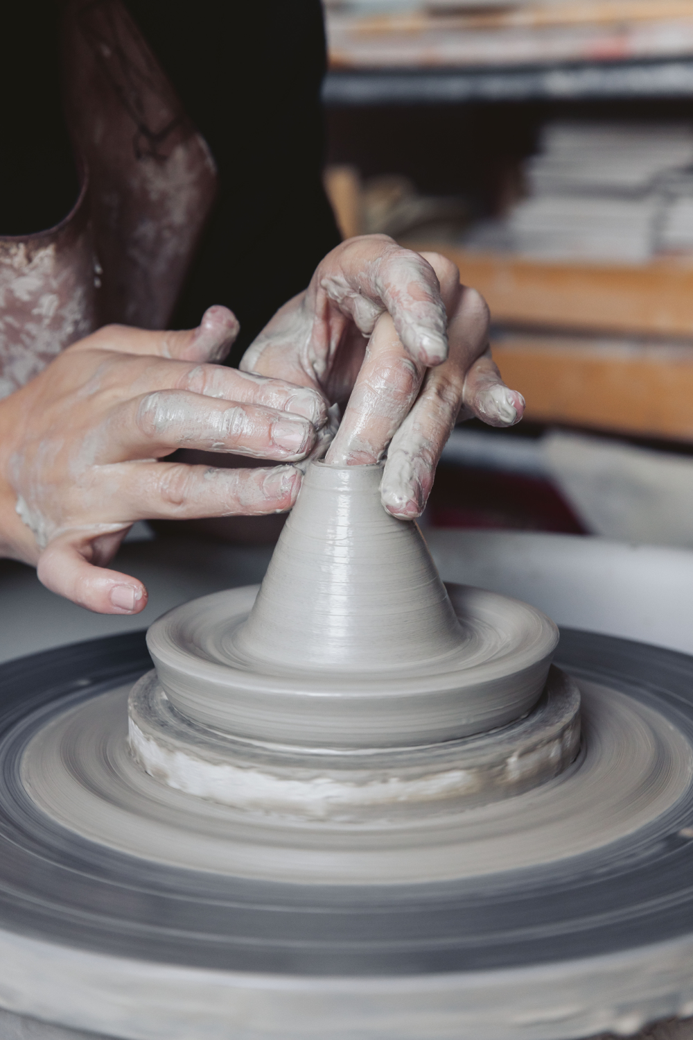 - Das Hochziehen des Kegels fühlt sich ziemlich seltsam an. Normalerweise stützen die inneren Finger sich am Boden ab, die äußeren am Drehteller. Hier ist es ganz anders. Haben Sie etwas Geduld, wenn es beim ersten Anlauf nicht gleich klappt.