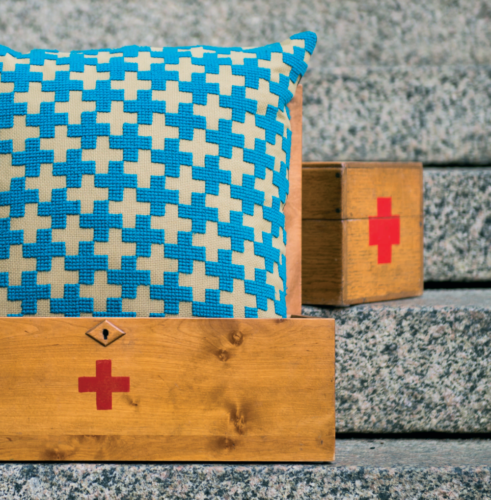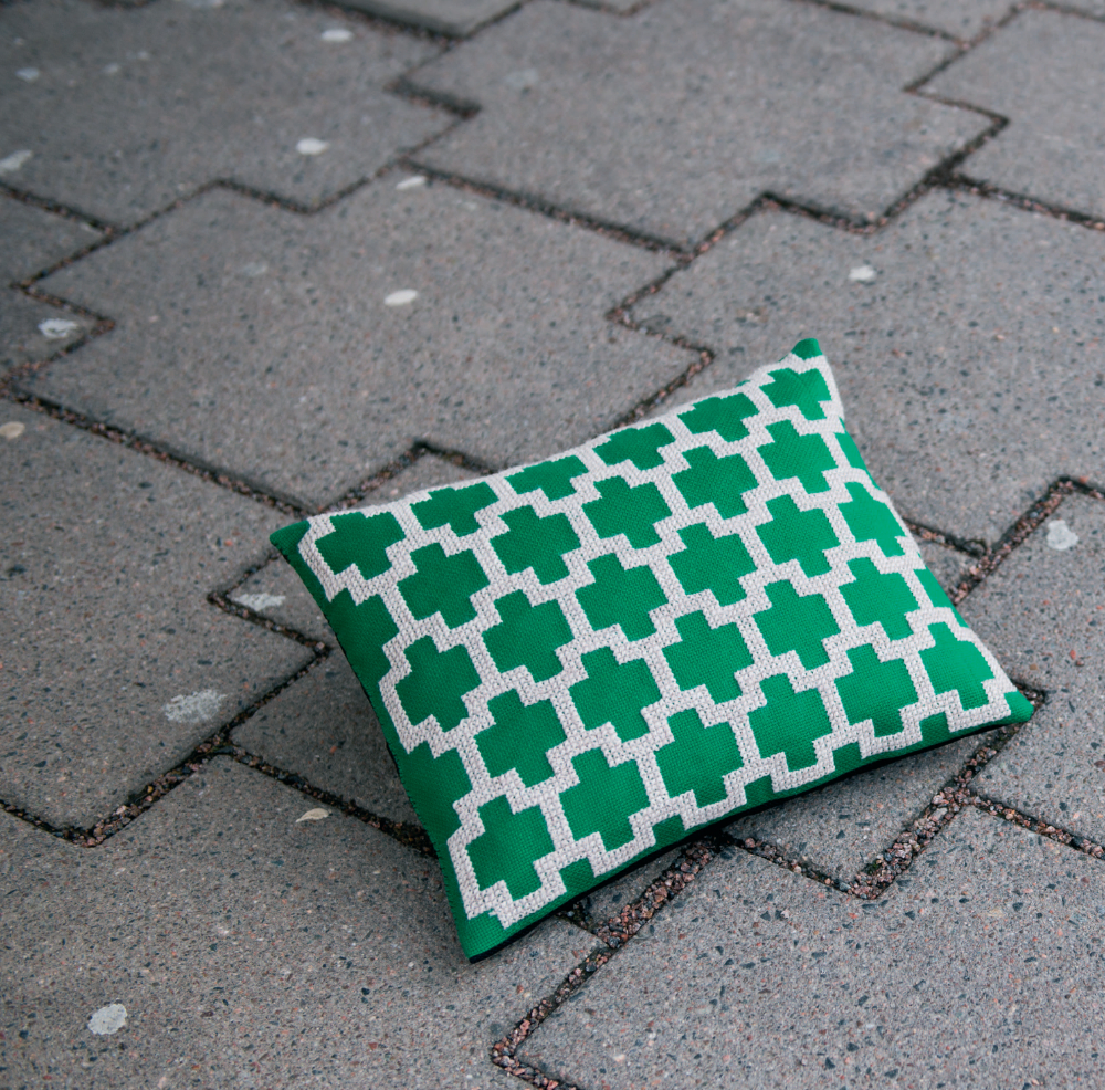 Grafische Muster: Anleitung für ein zweifarbig besticktes Kissen