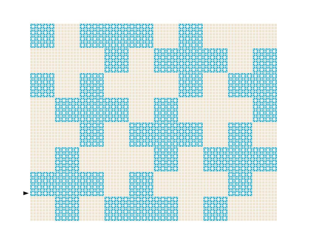 • Vier halbe Kreuzstiche von unten nach oben sticken. Wenden, dann zurück die ganzen Kreuzstiche arbeiten. Drei weitere Reihen genauso sticken.