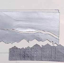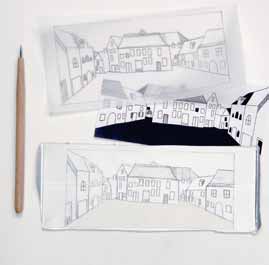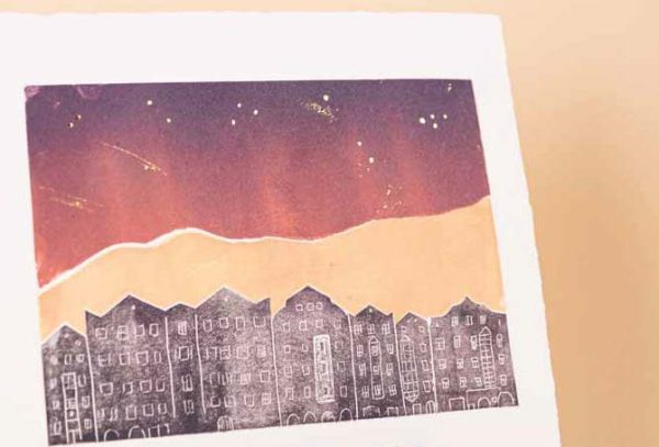 Der Milchkartondruck bietet die Möglichkeit, bei einem Projekt mehrere Drucktechniken zu kombinieren. Als Beispiel dient hier eine Stadtlandschaft. Es handelt sich um einen Puzzledruck mit folgenden Teilen: