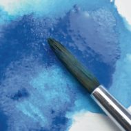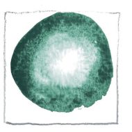 Nimm mit deinem Pinsel Farbe auf und zeichne einen Kreis in ein Kästchen. Reinige deinen Pinsel im Wasser. Gehe mit dem wässrigen Pinsel in deinen noch feuchten Kreis und bestreiche ihn mit Wasser. Die Farbe läuft in das Wasser und es entsteht ein zarter Verlauf. Tupfe mit dem Pinsel, bis du zufrieden bist.