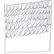 Zeichne wilde Schleifen und Schlaufen dicht beieinander. Arbeite mit gleichbleibendem Druck. Verteile die Schlaufen im ganzen Kästchen. Zeichne immer wieder über deine Kräuselungen, bis sich eine graue Fläche bildet.
