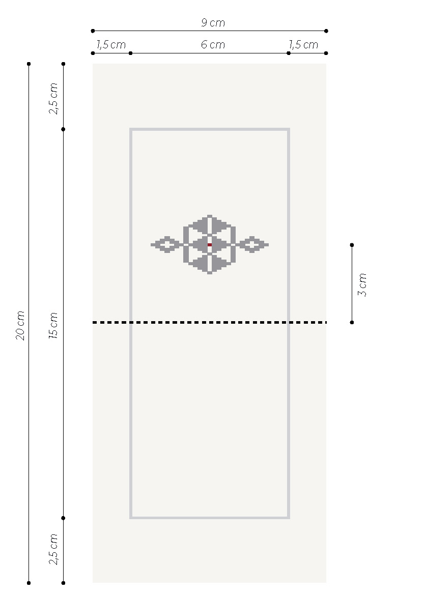 - Das Motiv so platzieren, dass es mittig und 3 cm oberhalb der Falzkante sitzt.