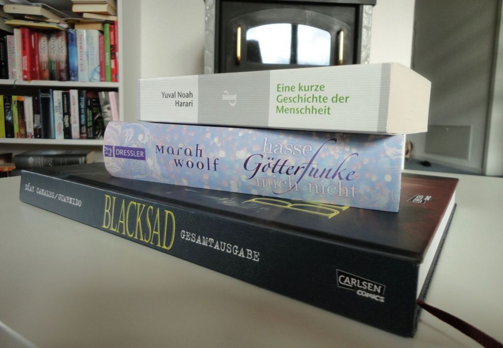 Auf meinem Nachttisch, bzw. überall in der Wohnung liegen meistens mehrere Bücher. Zurzeit lese ich Yuval Noah Hararis «Eine kurze Geschichte der Menschheit» und der zweite, neu erschienene Band einer Jugend-Fantasyreihe von Marah Woolf, welche ich noch während meiner Zeit als Buchhändlerin in einer Fantasyabteilung zu lesen begonnen hatte und von der ich jetzt unbedingt wissen muss, wie es weitergeht. Und wenn ich Lust auf was anders habe, vertiefe ich mich in die Gesamtausgabe von «Blacksad», einer der besten Comic-Serien die es gibt. Generell lese ich eigentlich alles, was mich interessiert: Hauptsache, ein gutes Buch!