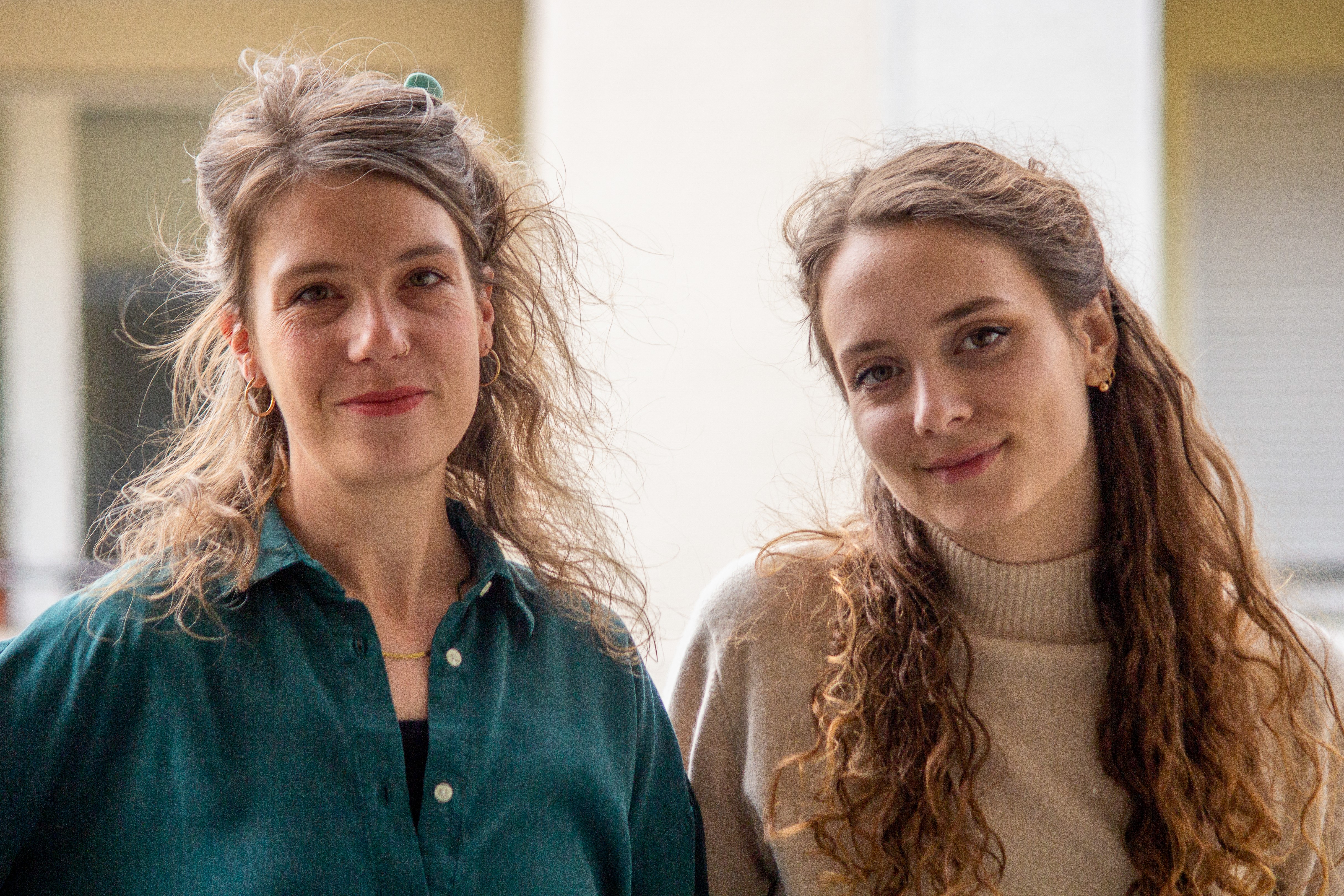 Réka Szücs (rechts im Bild) absolvierte 2023 an der Hochschule der Künste Bern den Master in Art Education und arbeitet als Kunstvermittlerin, Illustratiorin und Fotografin. In ihren künstlerischen Arbeiten beschäftigt sie sich kritisch mit Darstellungsweisen von Frauen und gesellschaftlichen Normierungen.